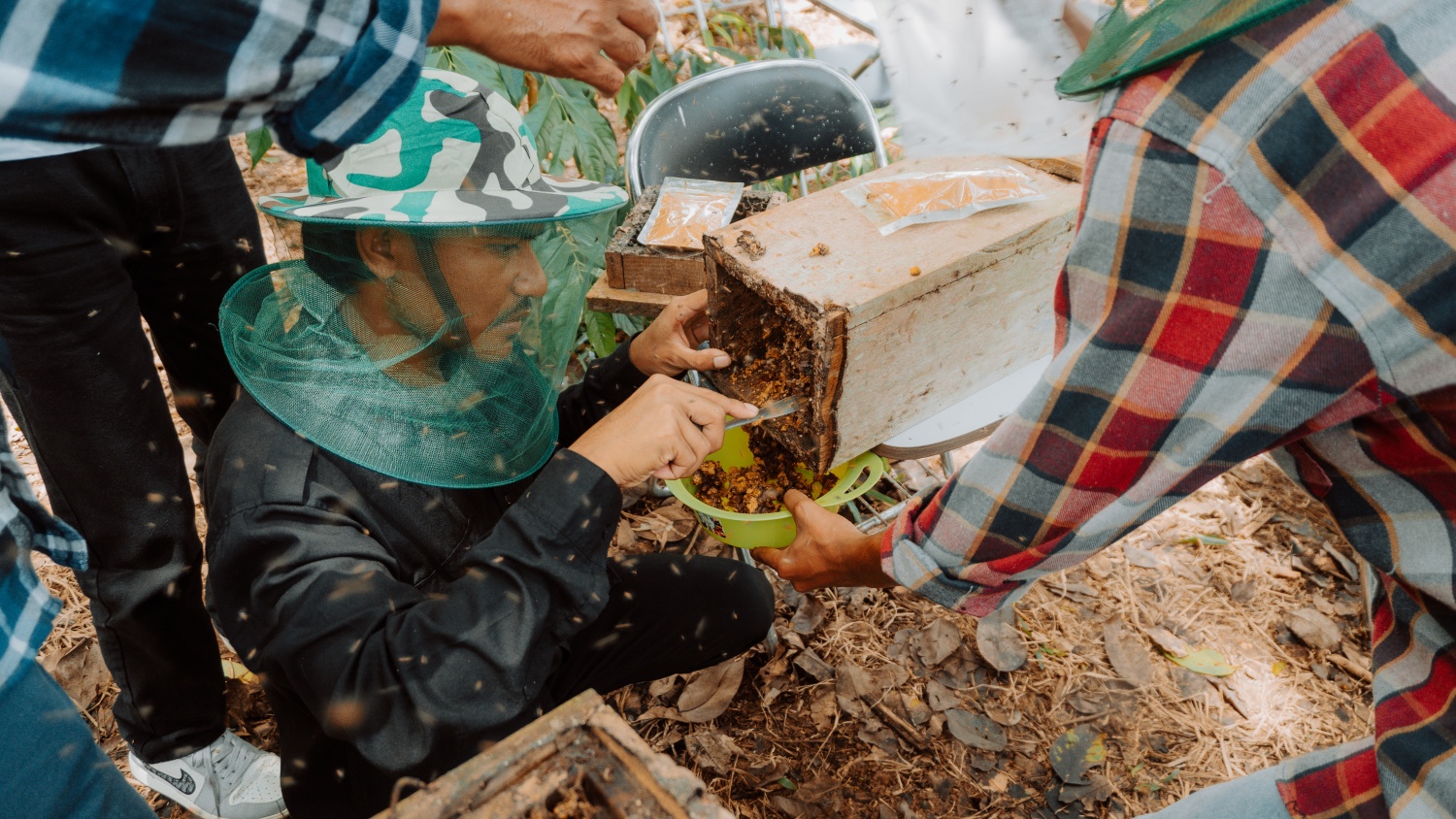 Additionally, we visited the Khairun University campus on neighboring Halmahera Island to inaugurate Beeworks Indonesia, which we’ll be coordinating with Beeworks Brazil. Just like the Brazilian project, students and professors from UNKHAIR will be working with local families to teach them how to raise native stingless bees and harvest honey.